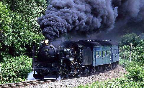 北海道函館本線を走る C62ニセコ号 日本最大の機関車で’88年に 復活運転したが、現在は運転休止中 |